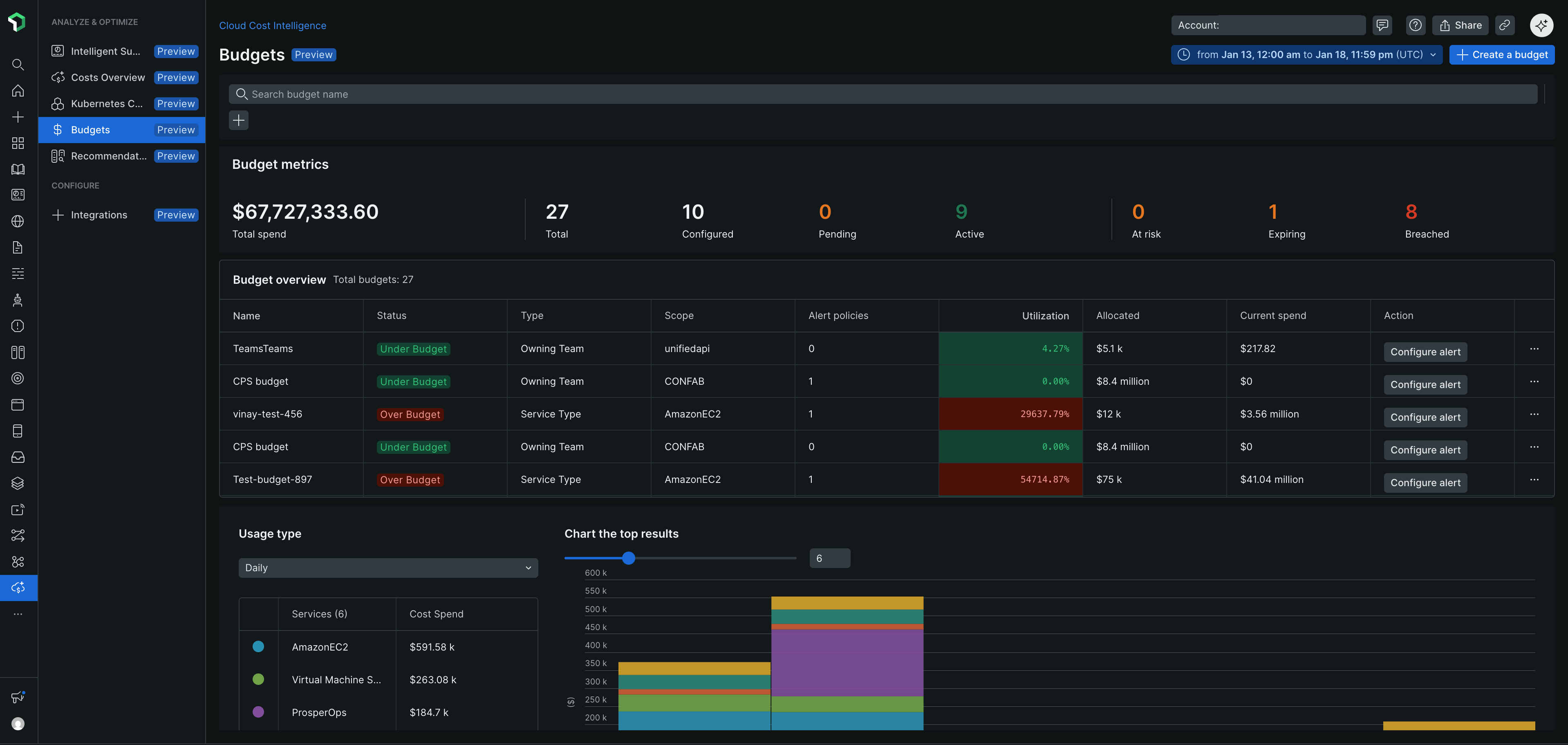 No menu de navegação à esquerda, selecione a aba Budgets.